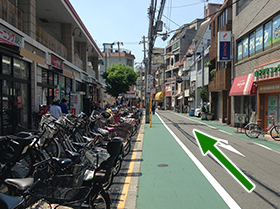 南海電車・地下鉄堺筋線 天下茶屋駅から ➊ 各線より改札を出てデイリーカナート イズミヤ方面へ。天下茶屋駅ビルを出たら右へ曲がります。 ➋ 左へ曲がります(信号を渡ります) ➌ まっすぐ進みます。 ➍ 国道26号線に出たら、交差点を渡って直進します。 ➎ 右手に天下茶屋中学校が見えます。 ➏ 関西電力今宮変電所の前を過ぎると、 ➐ 左手に当院が見えます。